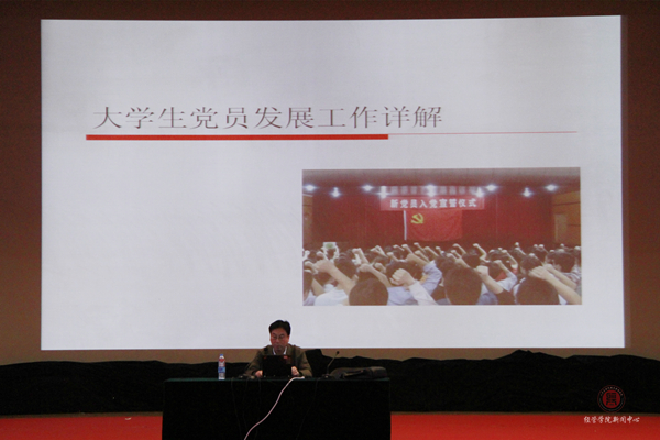 当天下午,组织部部长赵和文老师向同学们详细介绍了学生党员的发展程序,希望同学们能从平时做起,从小事做起,端正入党动机,争取早日加入中国共产党。之后,同学们统一观看影片《建党伟业》。此片是为庆祝中国共产党成立九十周年而制作的,讲述了从1911年辛亥革命的爆发到1921年中国共产党第一次全国代表大会的召开,这十年间发生的一系列重大事件。