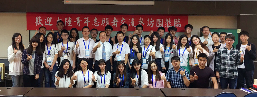 在台期间,交流团参访了多所高校。在高雄大学参访时,交流团与台湾同学一同聆听洪圣斐老师题为“媒体识读与公民参与”的通识课程讲演;在台中科技大学参访时,两岸关系研究学者、台中科技大学袁鹤龄老师为两岸青年学生举办题为“两岸关系的过去、现在与未来”讲座,并在讲解过程中,与大家热情互动,交流团的同学们也积极发言,分享自己的志愿服务经验。