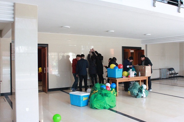 早上8点整,学生会全体成员就来到礼堂集中,进行晚会的准备工作。此次晚会的准备工作分工明确:文艺部负责设计舞台效果和幕后灯光工作、素拓和外联部负责布置台下和正门前的场景、体育部负责搬运舞台所需物品和布置舞台场景以及科协负责电脑的调试及切换音乐的运行。下午,晚会进行最终的彩排,文艺部干事们商讨演员站位及灯光的布局,努力将舞台的灯光效果发挥到极致;外联和素拓部精心装点着会场和门前的照片墙,上面记录了园林同学生活中相处的点点滴滴;体育部更是忙得不可开交,负责给各个部门搬运他们所需的材料,体育部之名实在是当之无愧。学生会全体成员都耐心细致地执行自己的任务,他们精益求精,只为将这场晚会完美呈现,让迎新晚会成为北京农学院最独一无二的一场演出。台上的演员们也将这次彩排当做实战一样来对待,每一个舞蹈动作,每一句诗词,每一首歌,他们都认真进行着最后的核对。