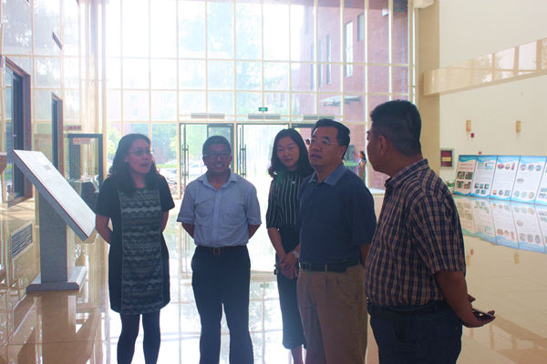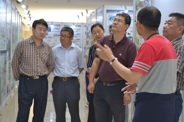 5月31日上午9时,校党委副书记石勇、宣传部长杨宝东、学生处处长韩宝平一行前来园林楼参观毕业生作品展,园林学院党总支书记王万山、副书记李金苹、风景园林系主任付军、艺术设计系主任贾海洋对作品展相关内容进行了介绍。付军老师以张家口宣化造纸概念园景观规划为例指出景观设计必须与具体环境、文化相结合;贾海洋老师从“落叶归根”社区景观出发,对景观小品的设计做了介绍。石书记结合北京街道改造项目实施谈了文化对于景观设计的重要意义,并对园林学院的人才培养目标表示肯定。王万山书记也表示学术的交流没有界限,每次参观交流都使我院师生的认识得到提高。