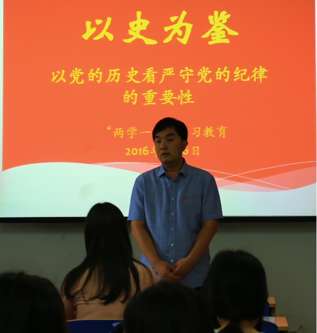 为深入学习贯彻习近平总书记系列重要讲话精神,推动全面从严治党想基层延伸,根据学校《关于在全体党员中开展“学党章党规、学系列讲话,做合格党员”学习教育的实施方案》,园林学院研究生党支部于6月6日在教A120开展了讲党课活动。支部书记崔金腾老师给学生党员、预备党员讲了题为《以史为鉴——从党的历史看“严守党的纪律”的重要性》的党课。