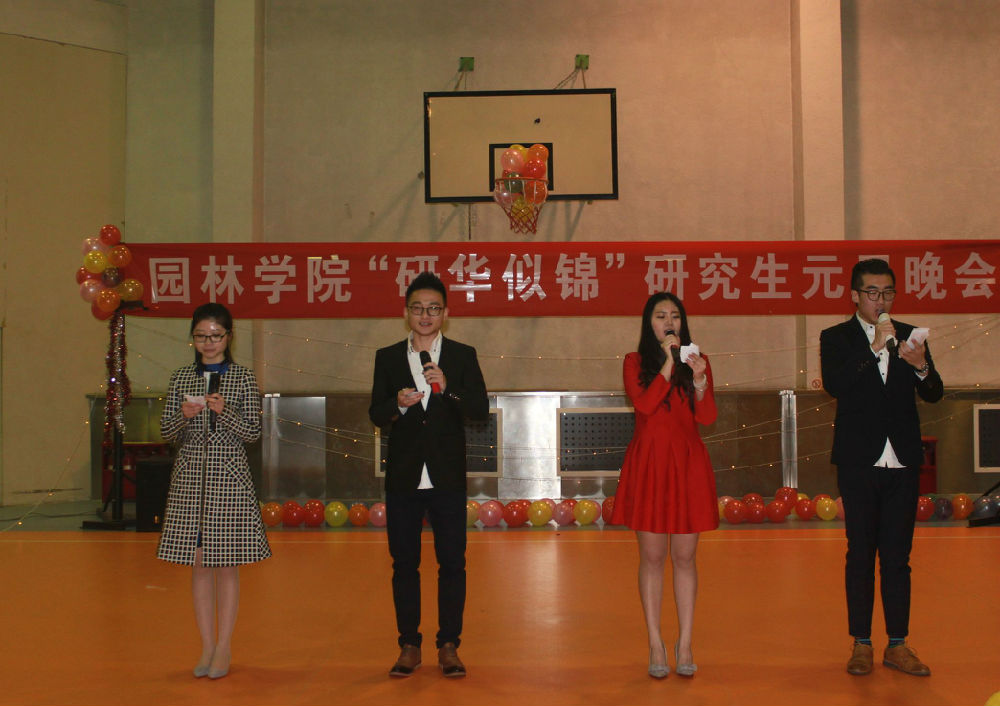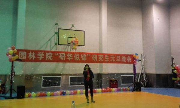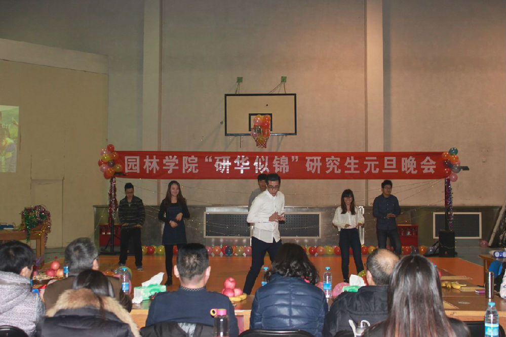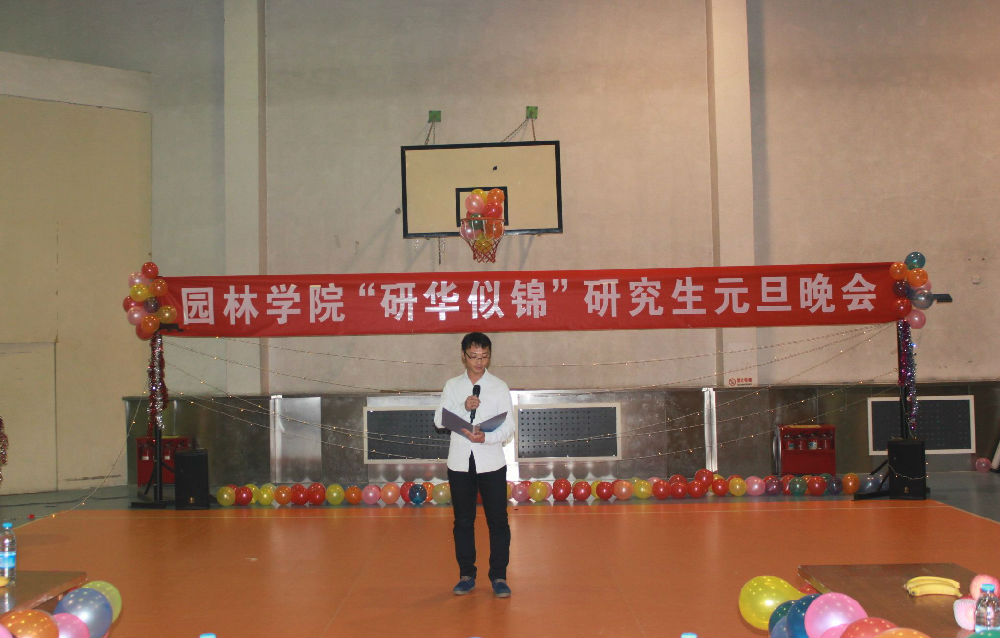 2015年12月29日晚,园林学院“研华似锦”2016年元旦联欢晚会在学校跆拳道馆如期举办。在这个美好的夜晚,研究生处副处长姬谦龙老师,园林学院党总支书记王万山老师,副院长王文和、张克中和李金苹老师,园林学院办公室主任莫建玲、辅导员满晓晶、科研秘书李贺娟和研究生秘书戴智勇老师与园林学院全体研究生齐聚一堂,共同迎接2016年元旦的到来。参加此次联欢会的还有校研究生会副主席与各学院研会主席。