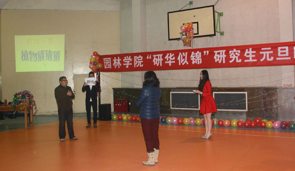 晚会在15级风景园林学班同学的劲爆舞步中拉开序幕。同学们自编自导的开场舞让大家为园林学院研究生的多才多艺感到惊叹。随后同学们带来了精彩的歌舞表演与诗朗诵,并以各种形式的游戏活动串联,在游戏植物猜猜猜、占领阵地中,老师和现场同学齐心协力共同完成,会场充满了欢乐的气氛。此外,王文和、张克中与李金苹、戴智勇老师也融入到活动当中,和同学们快乐的玩游戏,还为同学们倾情献唱,使得晚会气氛其乐融融。