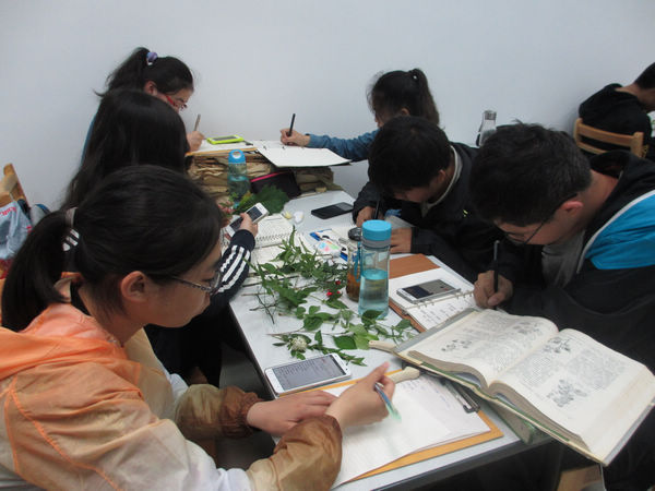 为保证教学效果,最后等待大家的是口试。同学们不仅要认识自己压制的上百种植物,还得辨别老师们新近采集回来植物的形态特征和所属科别。瞧,大家都在教室外面认真准备口试。考试中的同学你们要加油呦!