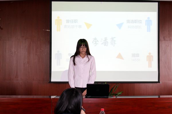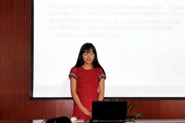 首先进行主席团竞选答辩。竞选主席级的各部长依次上台发表竞选演说,展示时间为5分钟。各部长主要就自己这两年在学生会开展的工作和获得的成就以及工作构想等几个方面进行答辩。此外还有评审团提问环节,王雪老师和评审团的提问主要围绕今后学生工作的开展及开展过程中遇到的问题等展开。随后进行学生会各部门的部长竞选,每人展示时长为3分钟。每一位参选人都为答辩做了充分的准备,上台落落大方,言辞之中向大家表述着自己想尽责园林学生会、愿为建设园林继续贡献自己的力量的决心。16点30分,园林学院学生会换届竞选答辩顺利结束。