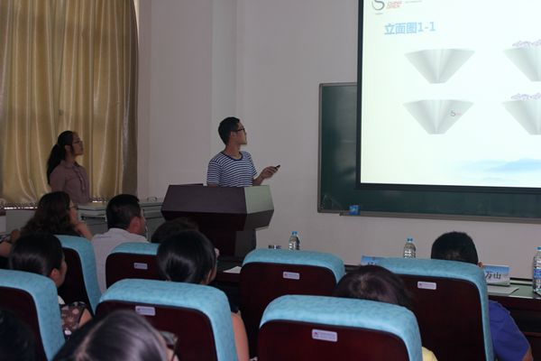 首先,李金苹副院长介绍了终审会流程。之后,各参赛选手按照顺序依次上台进行方案汇报,分为室外景观设计、球场内景观设计、室内景观设计以及中网纪念品展示四个环节。参赛选手们摩拳擦掌,希望将他们的设计方案充分的展示出来。汇报中,同学们将各种设计方案以平面、立面,360度旋转的形式,展现到了评委及现场老师的面前,为中国网球公开赛场馆提供优秀的景观设计方案。比赛如火如荼地进行着,下午四点,各参赛组设计展示结束。