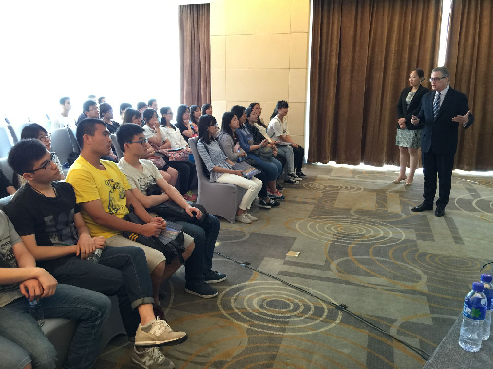 马东尼先生向旅游管理专业的学生认真介绍了他本人二十多年的职业生涯,横跨爱尔兰、英国、美国、中国等多个国家高级酒店,全面阐释了希尔顿酒店作为行业领先者的独创企业文化和自己的职业感悟,最后热情邀请我校师生在未来的“3+1”实习中选择希尔顿酒店。同时,人力资源总监孟令秋女士和培训经理姜瑞先生也向师生介绍了希尔顿全球青年计划以及该集团未来在中国的发展计划,鼓励学生在今后的实习和就业中选择希尔顿酒店。会后,师生们参观了希尔顿酒店的客房、康乐等各个部门,并在中午体验了希尔顿的员工餐厅。