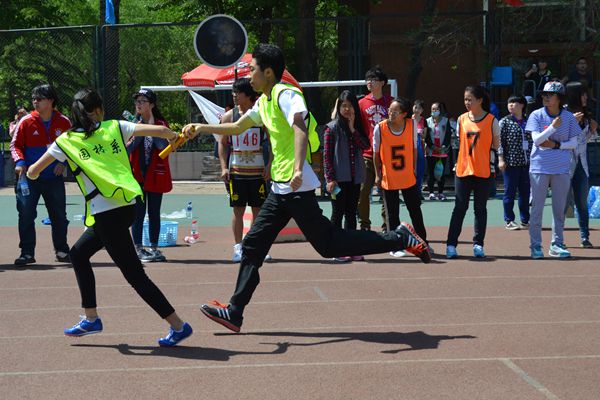 比赛还未开始,观众台上就已传来阵阵的加油声,原来4×100接力决赛即将开始,大家都在为学院的健儿们欢呼雀跃,园林的观众也不例外,尽情的欢呼着。“砰!”枪声刚响,园林学院第一棒的同学就像离弦的箭“嗖”得一下飞了出去,接力棒在八个人手中传递,它被紧紧地握在手里,因为它承载了园林学院的梦想与荣誉,传递着大家的期待与希望。
