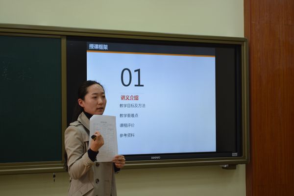 参赛教师根据学院下发的比赛要求,积极准备,编写教案,设计课堂教学。在讲台上5位参赛青年教师着装得体,教态自然大方。在讲课过程中,最大的特点是结合各专业实际案例,通过生动的语言、丰富的肢体表现力,并充分运用先进的多媒体辅助设备展示了和讲授内容密切相关的图片、视频等资源,不仅有层次、有重点地突出专业知识要点,而且大大扩充了教学内容和信息量。通过活跃的课堂气氛、深入浅出的基本理论讲解、多样的互动式教学方法、设计精美的PPT课件等提高了教学效果。学校提出的“教师主导,学生主体”、“以学生收获为目的”等教学理念得以具体贯彻和实现。