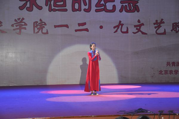 在“反对华北自治”、“打倒日本帝国主义”,“武装保卫华北”的呼喊声中,晚会紧张有序地进行。一首首高亢嘹亮的歌曲;一段段婀娜多姿的舞蹈;一段段意趣满满的表演,诉说着青年学子的拳拳报国志。下半场园林学院一曲女生独唱《新贵妃醉酒》,一度调动起场内热烈的气氛。柔美秀丽的旋律,圆润端正的唱腔赢得观众们的热情响应,博得了阵阵喝彩,场内高潮迭起。园林学子还积极参加了其他节目的演出,赢得了大家肯定的掌声,也为发扬129的精神起到了极大的推动作用。在观众此起彼伏的掌声中,本次晚会圆满结束。