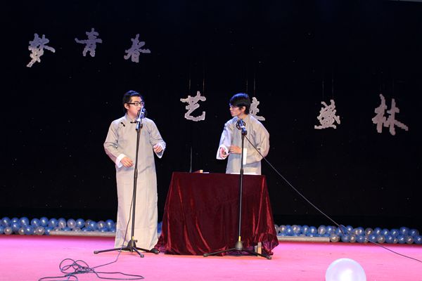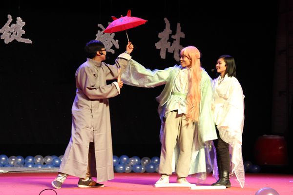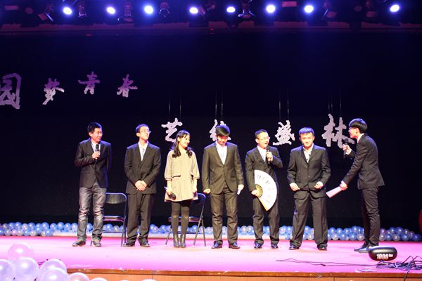 接下来的一个节目真正将晚会推向了一个高潮——园林学院副院长王文和老师与12级学生滕玥的二重唱“敖包相会”令人叫绝,全场的荧光棒随着旋律一起摇摆。当然,晚会还有激动人心的抽奖活动,“泰国曼谷芭堤雅五晚六日双飞游”、“豪华云南昆大丽六日双飞游”等重磅大礼。亲,你中奖了吗?随后的节目中还有众人称赞的舞蹈《Venus》、搞笑的小品《YOGA KING》、话剧《大话白蛇》、《还珠好声音》等。精彩的节目中当然不缺全场的欢呼声、尖叫声,还有荧光棒掀起的蓝色海洋。最后,晚会由园林学院学生会各正副部长的一曲《当》画上了一个圆满的句号。