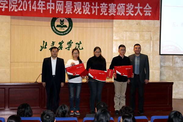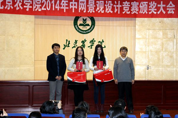 2015年1月13日北京农学院会同中网组委会联合举行了2014年中网场馆景观设计竞赛颁奖大会。北京农学院党委副书记高东、副校长范双喜、北京中国网球公开赛体育推广有限公司副总经理刘明秋、办公室主任王颖彦、办公室经理于洁、北京农学院党委宣传部部长杨宝东、教务处副处长安健、团委书记李相阳和园林学院党政领导出席大会,园林师生代表参加了大会,会议由园林学院党总支书记王万山主持。