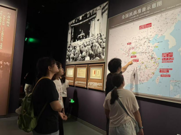活动当日,学生党员怀着肃穆崇敬的心情走进中国人民抗日战争纪念馆。展览由“奋起抵抗 中国人民打响世界反法西斯战争第一枪”到“铭记历史 珍爱和平 携手构建人类命运共同体”共8个部分组成,通过丰富的史料、多样的形式,全景式展现了中国人民14年抗战的光辉历程。沿着导引顺序,同学们依次参观了“九一八事变”“七七事变”等展区,3237件文物、1525张照片,每一件文物都承载着可歌可泣的英雄故事,无声诉说着那段苦难与抗争的历史,将大家带回浴血岁月。