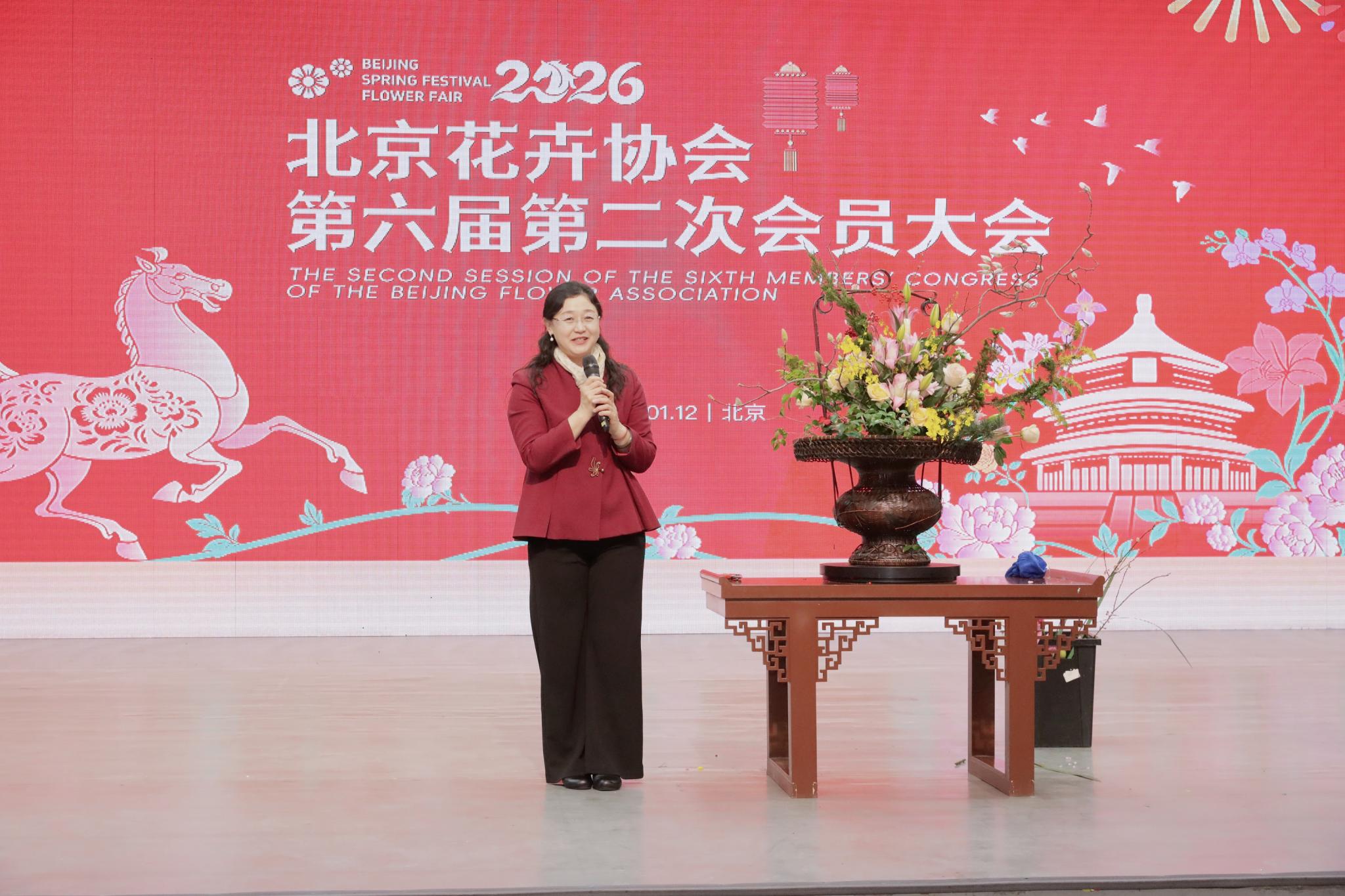 2026年1月12日,北京花卉协会第六届第二次会员大会在中国插花艺术博物馆举办。园林学院侯芳梅副教授作为北京花卉协会理事出席大会,并受邀在大会期间做传统插花展演。