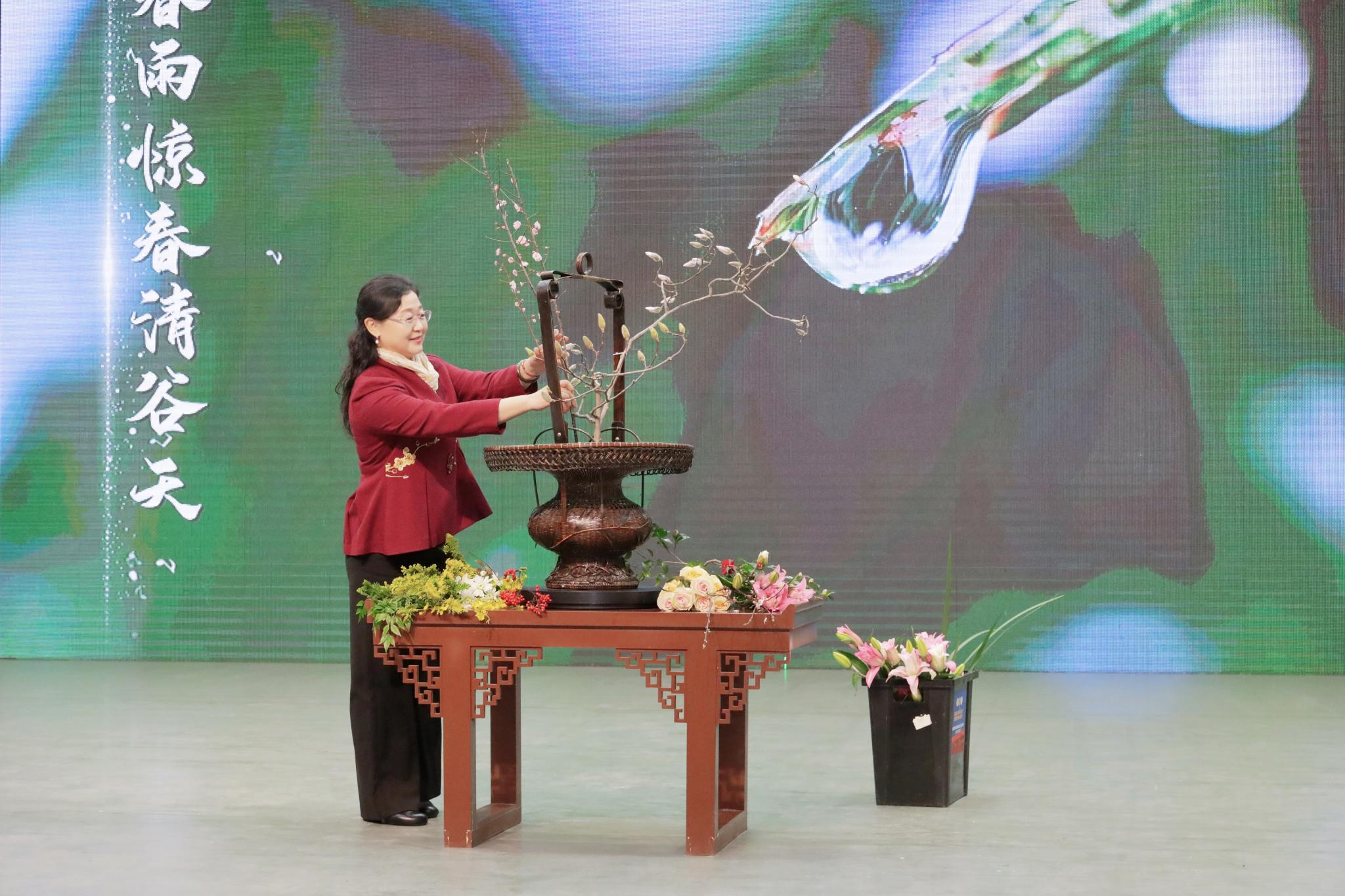 侯教授通过大会舞台,将传统插花崇尚自然、重形尚意的风格特点表达的淋漓尽致;其淡定从容、优雅大方的舞台插花表演艺术,更是提升了传统插花的艺术感染力,受到大会各界一致好评!传统插花是国家级非物质文化遗产,侯芳梅副教授作为传承人,始终将传播弘扬中国插花艺术和优秀传统文化作为重要己任与担当,并为之付出了不懈努力,对推动传统插花艺术的普及推广做出了重要贡献。