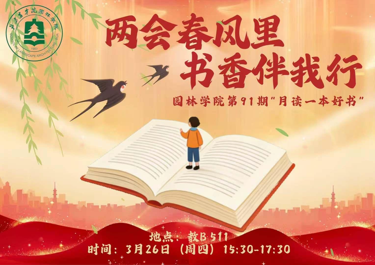 3月26日,园林学院第91期“月读一本好书”活动在教B511顺利举办,本期主题是“两会春风里,书香伴我行”。2026年全国两会圆满落幕,春风浩荡启新程,“全民阅读”连续13次写入了政府工作报告,《全民阅读促进条例》也正式施行,让书香沁润时代成为新风尚。本期活动为新学期首场读书分享,园林学院研究生们共同在墨香中聆听时代声音,于阅读中凝聚奋进力量。本次活动由学院研究生会学术部边子琨主持。
