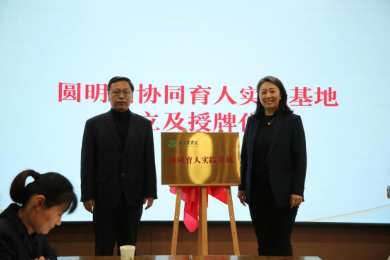 仪式上,园林学院院长赵和文、副院长孙薇薇分别与圆明园管理处领导共同为北京农学院圆明园研究院及北京农学院协同育人实践基地揭牌,标志着学校与圆明园管理处的校地合作迈入平台化、体系化新阶段。双方深度融合圆明园国家级历史文化遗产资源,与北京农学院在风景园林、生态保护、城市林业、古树名木保护、花卉种质创新等领域的学科人才优势,推动文化遗产保护与现代农林科技跨界融合,为古典园林科学保护、生态修复、文化活化搭建高水平创新平台。